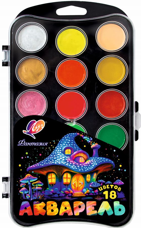 Новый набор акварельных красок "Фантазия" станет замечательным подарком для детей дошкольного и школьного возраста, которые не ограничивают свою фантазию и используют в творчестве разнообразные материалы и техники. Набор акварели "Фантазия" включает в себя 6 классических, 6 неоновых и 6 перламутровых цветов. Краски разлиты в донышко чёрного цвета с европодвесом, прозрачная крышка. Красивая палитра цветов (классические, неоновые, перламутровые) В акварель добавлен мёд, что делает краску более эластичной и улучшает её качество Акварель прекрасно размывается и разносится по поверхности бумаги Прозрачная основа при нанесении, без вкраплений Легко наполняется на кисть Краски смешиваются между собой, сохраняя яркость и красоту цвета Срок годности не ограничен
