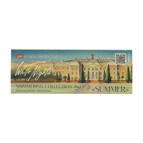 Мерцающие акварели – это сочетание традиционной красоты художественной акварели «Белые ночи» и современных технологий создания пигментов на основе натуральной слюды. Цветовая гамма набора состоит из 6 ярких оттенков мерцающих акварелей серии «Мерцание», дополненных белым и черным оттенками основной палитры акварели «Белые Ночи». Набор комплектуется в пластиковом коррексе и картонном чехле. Серия акварели «Мерцание» - хамелеоны и дуохромы в акварели, обладает насыщенным блеском и переливом цвета в работе на черной бумаге и ярким основным тоном цвета с крупным зерном мерцания в работе на белых сортах бумаги. Мерцающая акварель прекрасно набирается из кюветы на кисть, позволяет работать пером в графической технике и технике каллиграфии. Шесть ярких оттенков серии «Мерцание» имеют единое крупное зерно мерцающих частиц. Профессиональные художественные акварельные краски «Белые ночи» представляют собой тонкодисперсные суспензии пигментов и наполнителей в связующем. В состав связующего входит водный раствор растительного клея – натурального гуммиарабика. Состав набора: 988 Розово-красное мерцание | 987 Оранжевое мерцание | 989 Синее мерцание | 986 Лимонное мерцание | 984 Желто-зеленое мерцание | 990 Сиреневое мерцание | 101 Белила титановые | 800 Марс черный | Состав краски: пигмент, наполнитель, гуммиарабик, вода, добавки. Краски в кюветах имеют традиционную полусухую консистенцию. Перед началом работы поверхность краски необходимо смочить водой. Объем краски в кювете: 2,5 мл Акварельные краски «Белые ночи» безопасны, сертифицированы и соответствуют стандартам ASTM D-4236. Хранить в сухом закрытом помещении при температуре не ниже 0 °С на расстоянии не менее 0,5 м от отопительных приборов. Гарантийный срок – 5 лет.