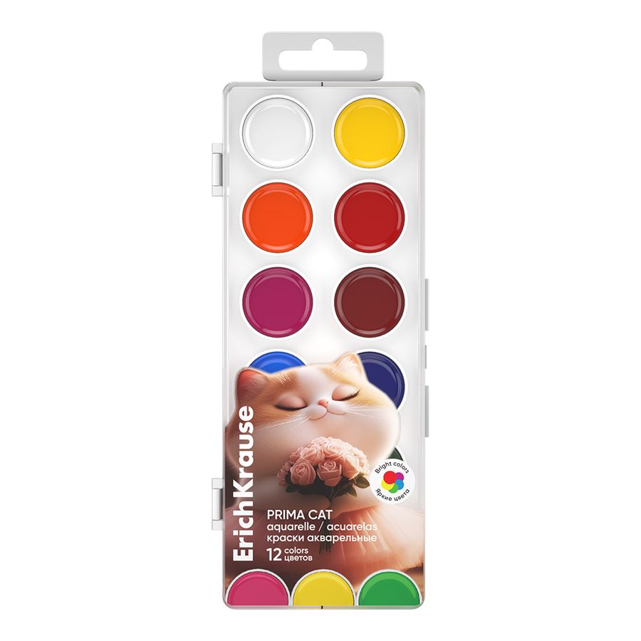 Акварель 12цв без кисти пласт.уп. европодвес Prima Cat ERICH KRAUSE 65409