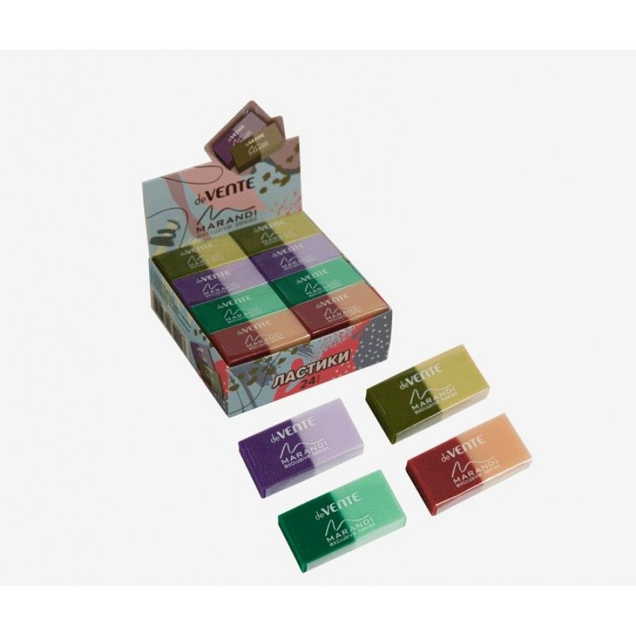 Ластик "deVENTE. Marandi" синтетический (ECO-PVC), прямоугольный двухцветный, 44x22x11 мм, dust-free, в индивидуальной упаковке со штрих кодом, в картонном дисплее