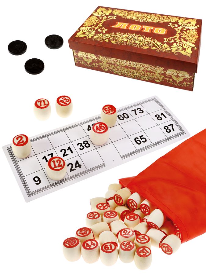 Лото пластиковое с золотым тиснением (23x11x8 см) в картонной коробке (целые бочонки).