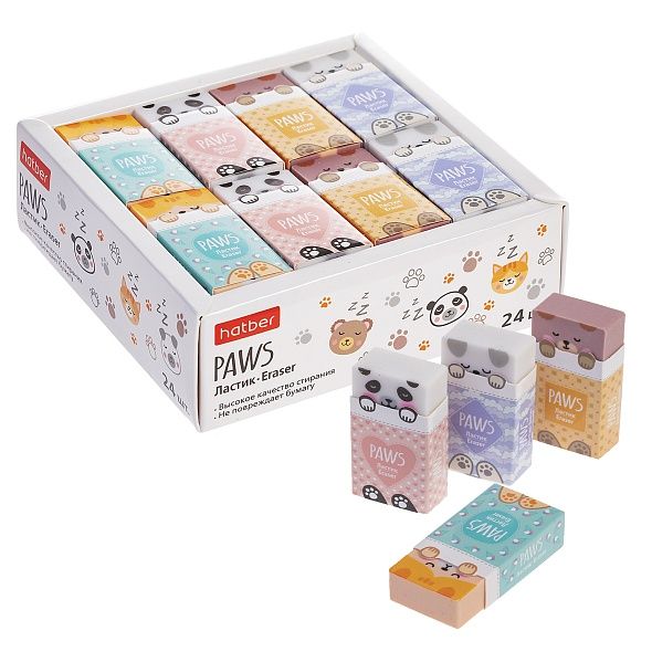 ER_083685 Ластик PVC Hatber Paws/Лапки 24шт в картонной Дисплей-витрине