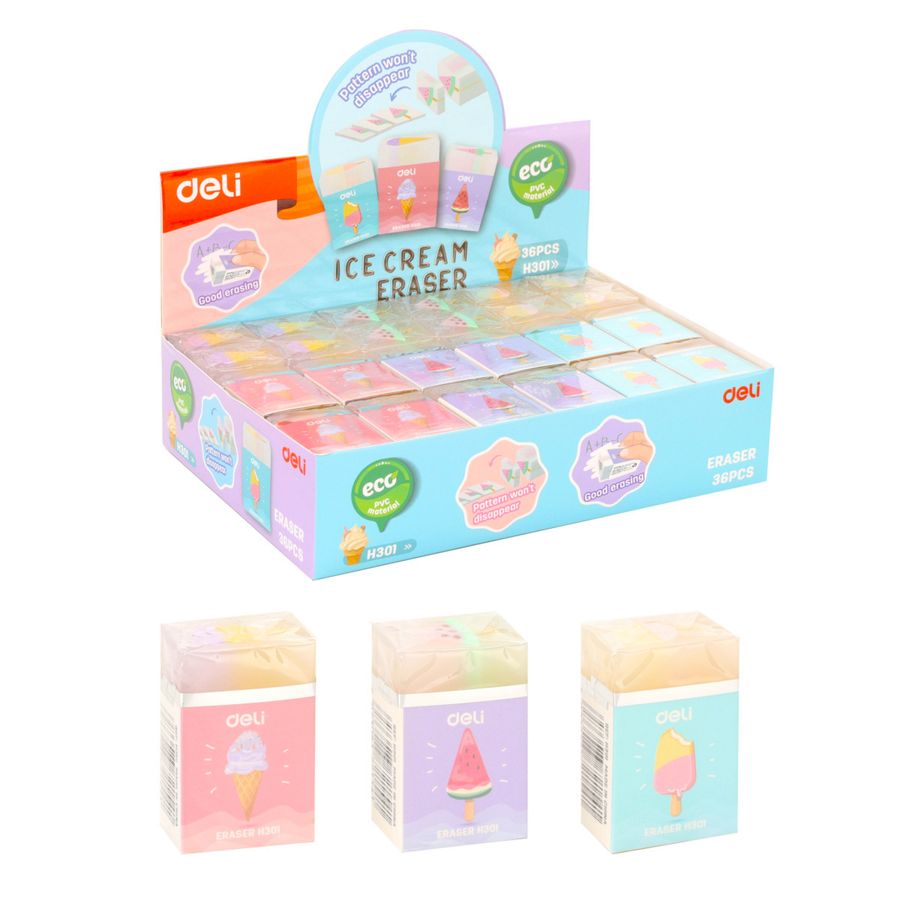 Ластик прямоугольный 38×25×17мм ассорти DELI EH301