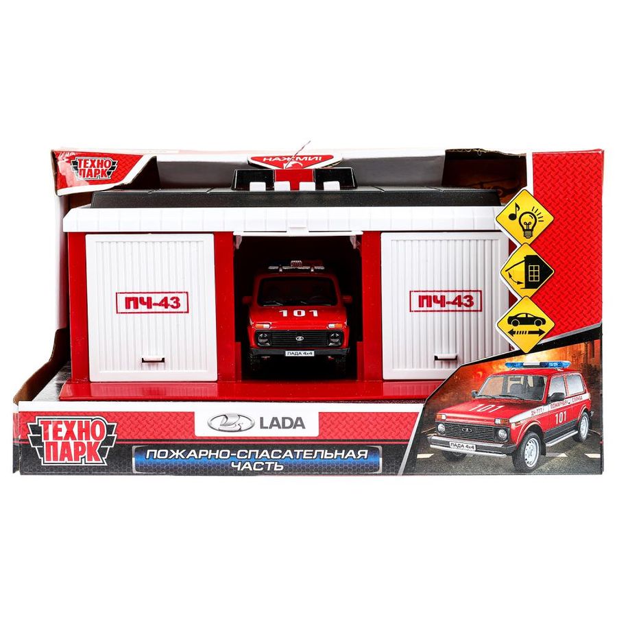 Игровой набор «Пожарно-спасательная часть» ТМ «Технопарк» обязательно понравится маленькому спасателю: - световые эффекты - звуковое сопровождение - в комплекте: 3-х секционный гараж, модель пожарной машины «Lada 4x4» - двери гаража опускаются и поднимаются - инерционный механизм (поставьте машинку на ровную поверхность, потяните назад и отпустите – она тут же поедет вперёд) Этот набор с реалистичной, детально проработанной пожарной машинкой и гаражом непременно увлечёт вашего ребёнка и вдохновит на множество новых игровых сюжетов. Кроме того, эта игрушка познакомит малыша с видами спецтранспорта. Игра с набором ТМ «Технопарк» развивает: - воображение - координацию движений - внимание - ловкость - моторику Размер: 23 х 11 х 17 см. Материал: пластмасса. Работает от 3-х батареек типа LR44 (в комплекте). Рекомендовано детям от 3-х лет.