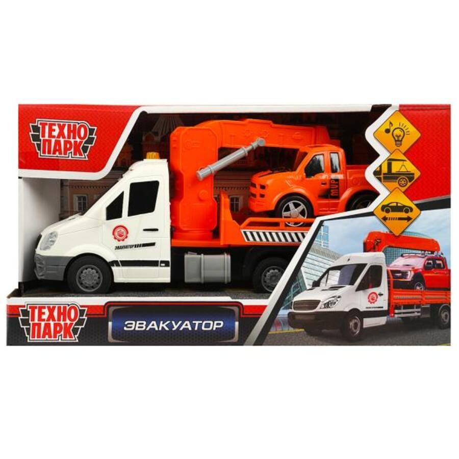 Инерционная пластиковая модель «Эвакуатор» ТМ «Технопарк» - прекрасный подарок для ребёнка: - звуковое сопровождение - световые эффекты - подвижные детали - машинка в комплекте - длина модели 29 см - инерционный механизм (поставьте машинку на ровную поверхность, потяните назад, отпустите – и она тут же поедет вперёд) Пластиковая модель, выполненная с учётом всех особенностей прототипа, обязательно понравится вашему ребёнку. Каждая деталь отлично проработана. Реалистичный дизайн данной модели плюс световые и звуковые эффекты позволят с головой погрузиться в игру, придумывая новые интересные сюжеты. Кроме того, эта игрушка познакомит детей с видами спецтехники. Игра с инерционной моделью ТМ «Технопарк» развивает: - координацию движений - внимание - ловкость - фантазию и воображение Размер машинки: 29 х 13,5 х 9,1 см. Материал: пластмасса. Работает от 3-х батареек типа LR44 (в комплекте). Рекомендовано детям от 3-х лет.