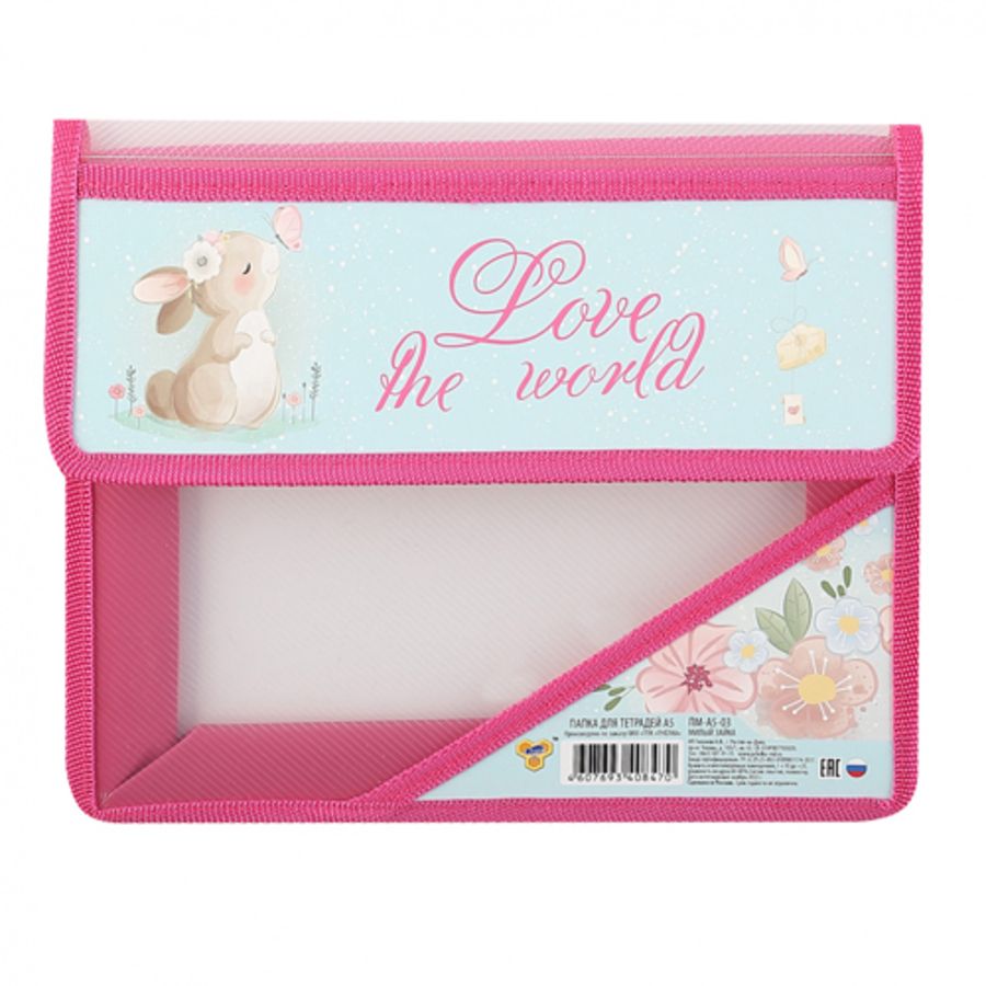Папка для тетрадей А5 пластик, на липучке, клапан + уголок 230/190/50 ПМ-А5-03, МИЛЫЙ ЗАЙКА 2023