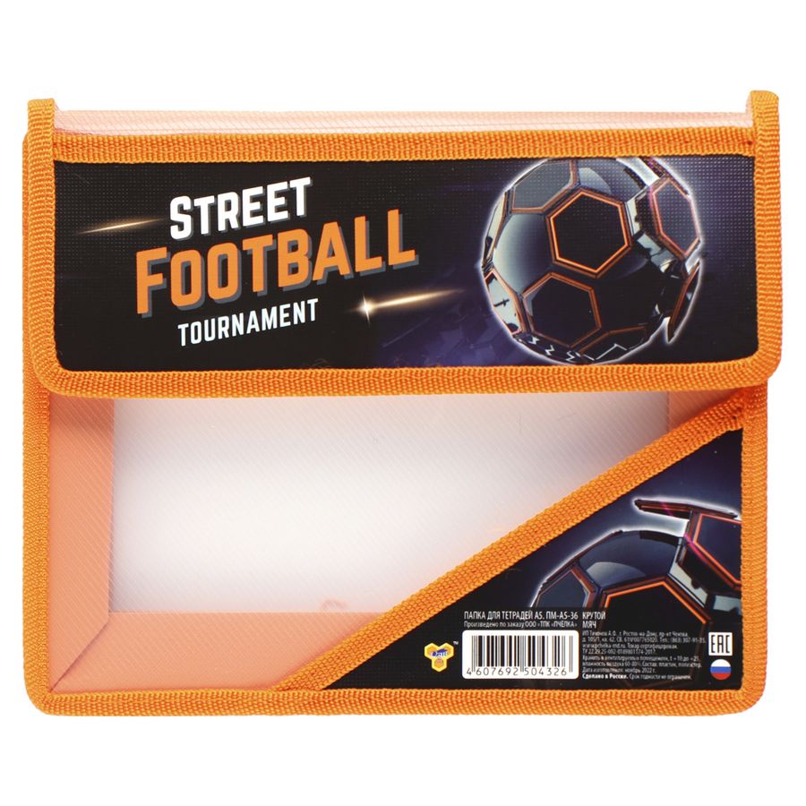 Папка для тетрадей А5 пластик, на липучке, 2 СЕКЦИИ, клапан + уголок 230/190/50 ПМ-А5-36, КРУТОЙ МЯЧ 2023