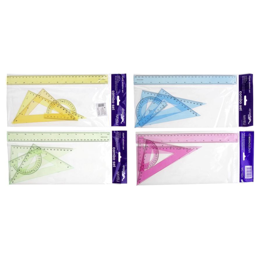 Набор геом. 4пр. большой (линейка 30см, угол.2шт, трансп.) ассорти SM 541271