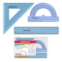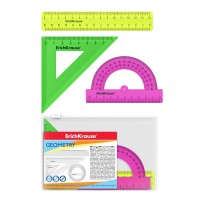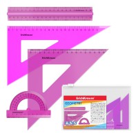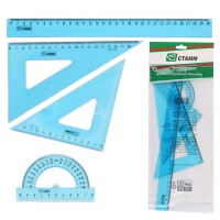 Набор геометрический полупрозрачный из силикона. В комплекте: линейка 20 см, 2 угольника, транспортир в пенале.
