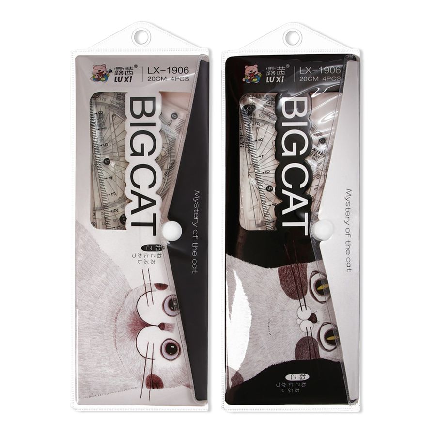 Набор геом. 4пр. средний (линейка 20см, угол.2шт, трансп.) Котик пенал ассорти SM 9630260