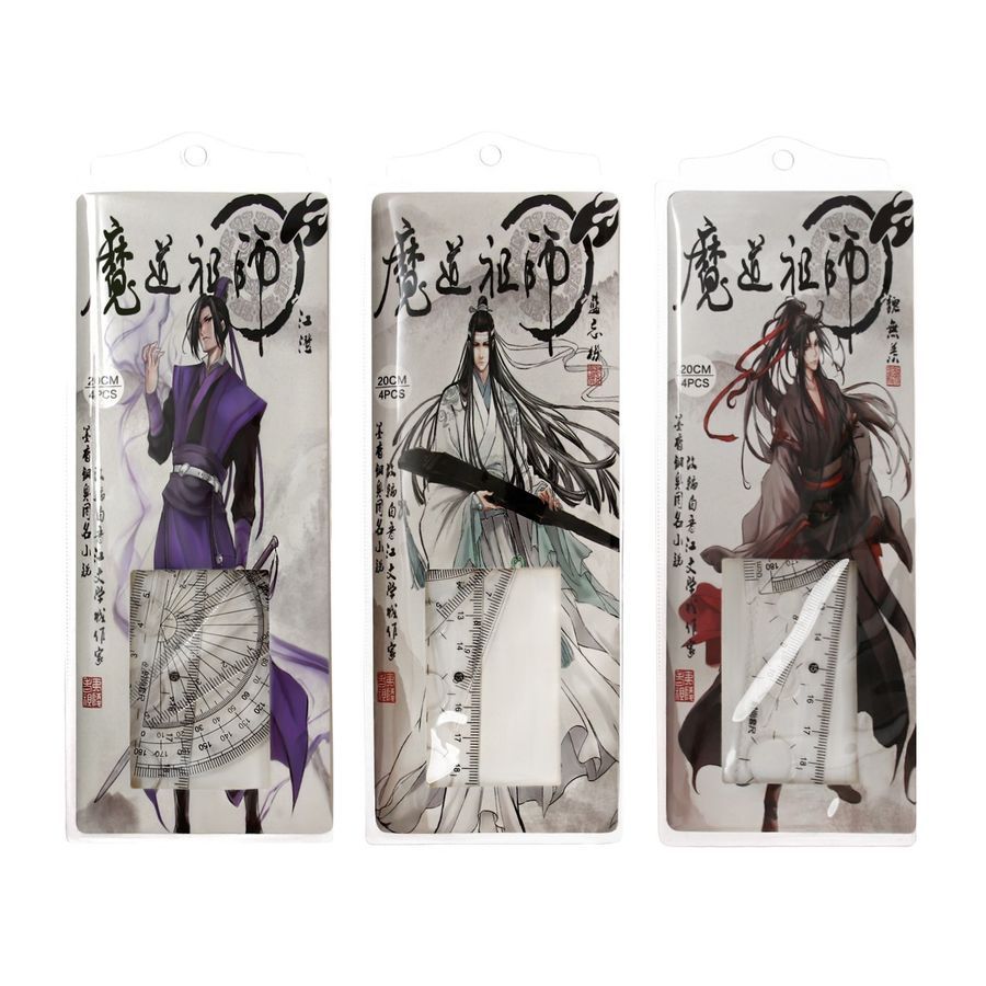 Набор геом. 4пр. средний (линейка 20см, угол.2шт, трансп.) Аниме пенал ассорти SM 9630267
