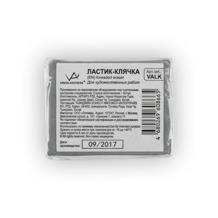 "VISTA-ARTISTA" VALK Ластик-клячка - специальная легкомнущаяся очищающая резина, имеющая тестообразную консистенцию и высокие адсорбирующие свойства. Клячкой не стирают карандаш, а слегка прижимают ее к тем частям рисунка, которые хотят осветлить, в результате частички графического материала пристают к клячке не размазывая при этом рисунок. Незаменимый инструмент для художника-графика. Размер ластика 4.5 х 3.5 х 1 см