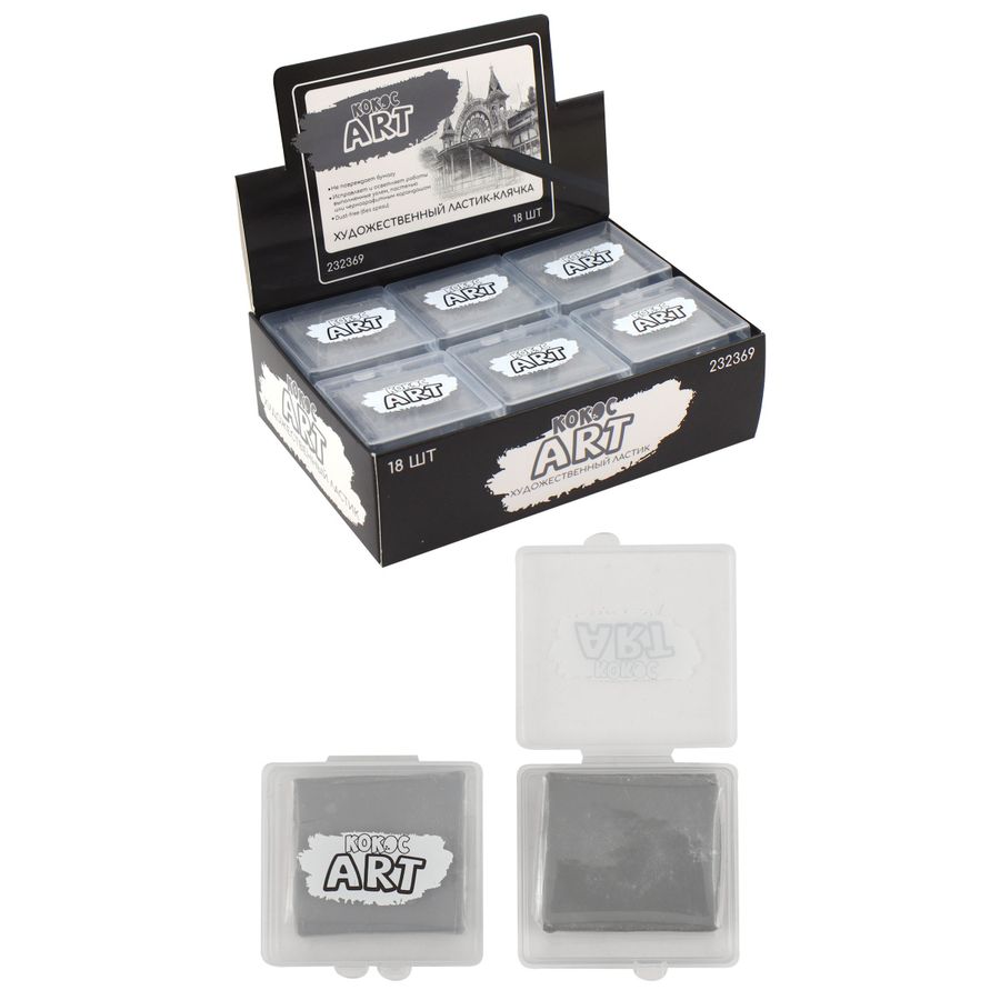 Ластик -клячка Art серый 40х35х10мм пласт.уп. Кокос 232369