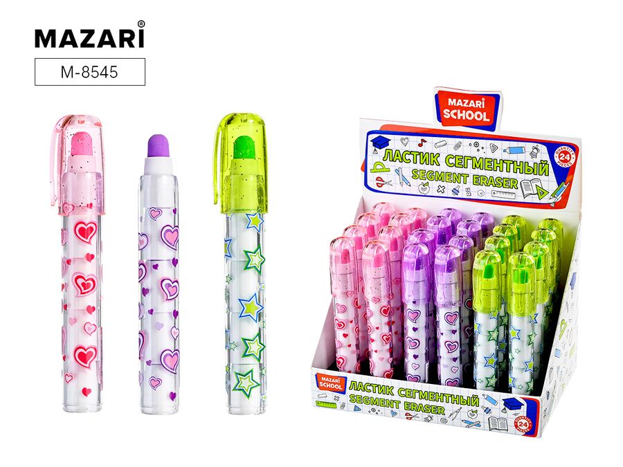 Ластик сегментный термопласт.резина пласт. корпус ассорти MAZARI M-8545