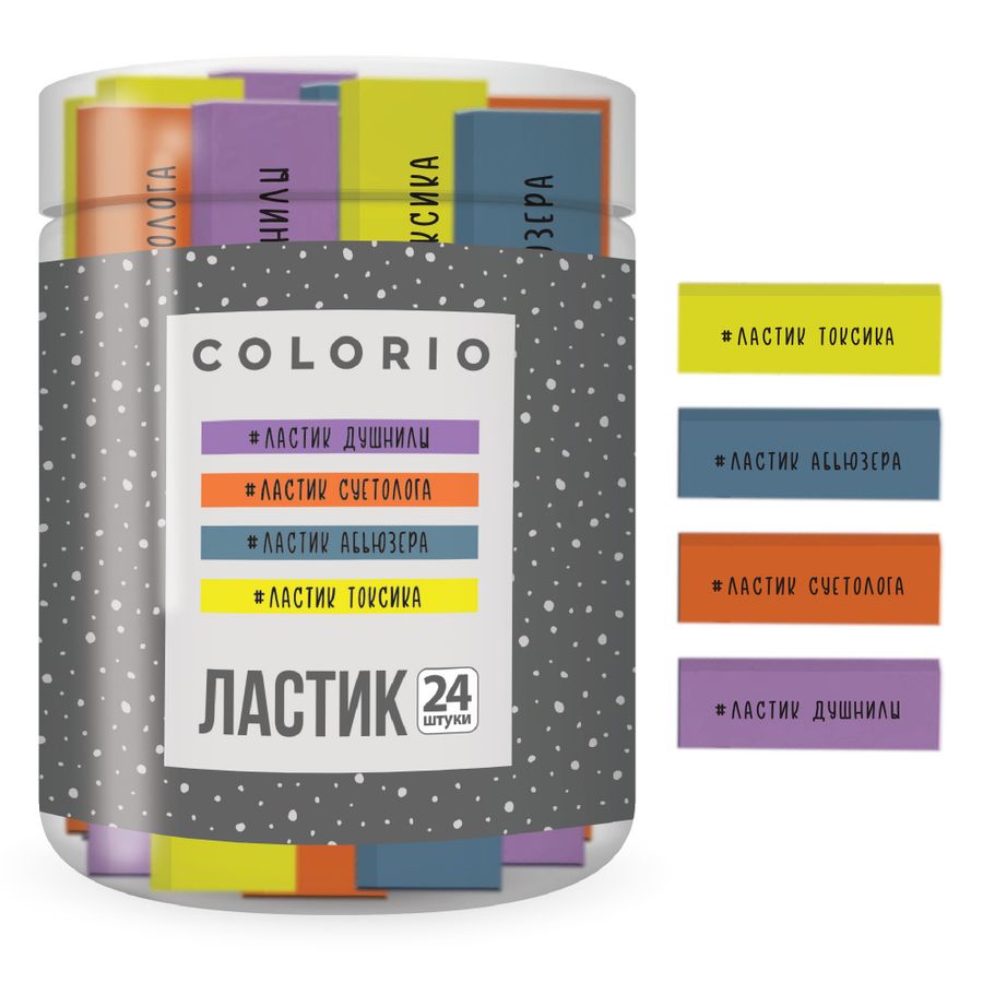 Ластик прямоугольный термопласт.резина 70х20х10мм ассорти Colorio COLB-US-216-PVC24