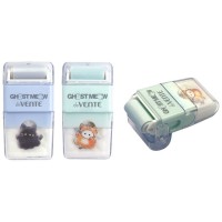 Ластик "deVENTE. Ghost Meow" синтетический материал (ECO-PVC), треугольный, белый, 80x10 мм, с пластиковым держателем, dust-free, ассорти 2 цвета, в индивидуальной упаковке с штрих кодом, в пластиковом тубусе