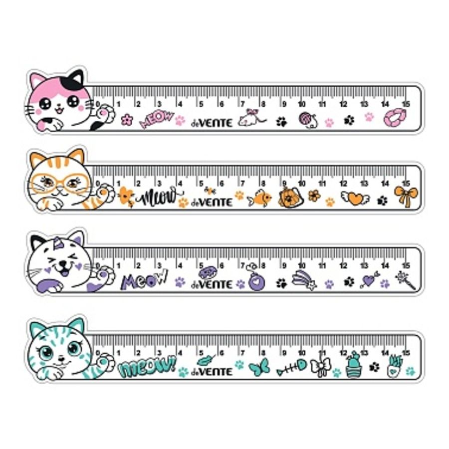 Линейка пластиковая "deVENTE. CAT" гибкая, формованная, 15 см, с запечаткой на корпусе, с индивидуальной маркировкой