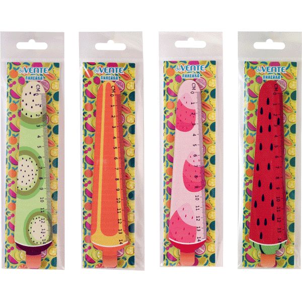 Линейка "deVENTE. Juicy Fruit" фигурная деревянная крашенная с рисунком, шкала 14 см (общая длина линейки 18 см) в блистерной упаковке, ассорти