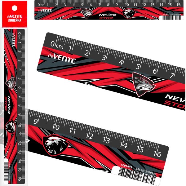 Линейка пластиковая "deVENTE. Never Stop" 16 см, с дизайном, с индивидуальной маркировкой, с цветным стикером.