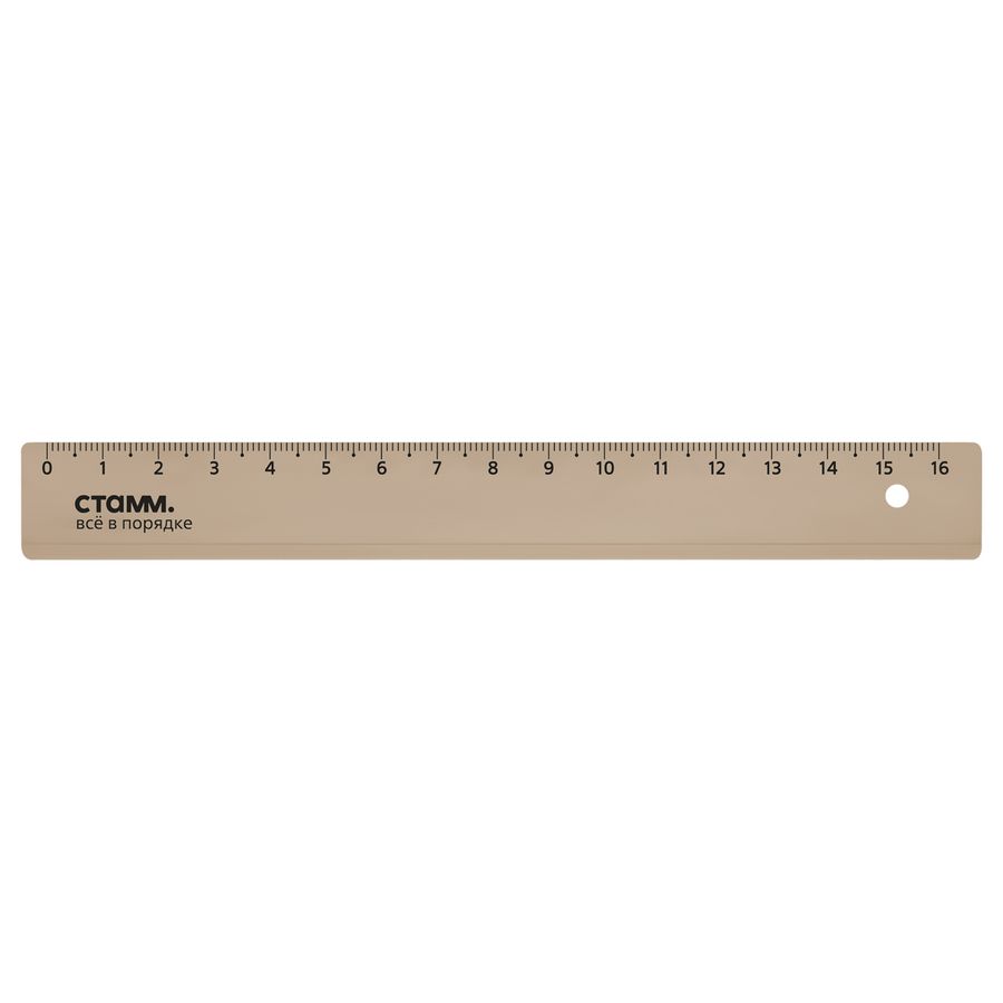 Линейка «СТАММ» предназначена для чертёжно-измерительных работ. Длина шкалы – 16 см, ширина линейки – 21 мм. Изделие имеет безопасные закруглённые края и чёткую контрастную миллиметровую шкалу. Линейка изготовлена из качественного полистирола, и имеет гладкую глянцевую поверхность. Цвет изделия – тонированный коричневый.• Материал: полистирол;• Длина шкалы: 16 см;• Ширина линейки: 21 мм;• Цвет: тонированный коричневый.