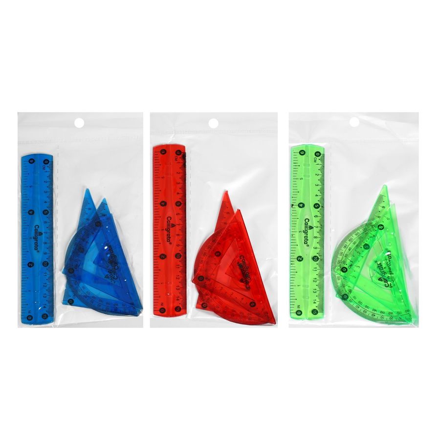 Набор геом. 4пр. средний гибкий (линейка 15см, угол.2шт, трансп.) ассорти CALLIGRATA 1302058