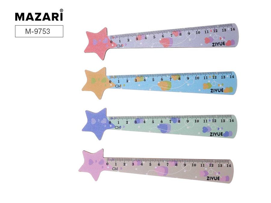 Линейка деревянная 14 см, 1 дизайн 4 цвета, ОПП- упаковка с европодвесом
