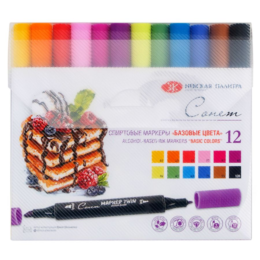 Спиртовые маркеры «Сонет» предназначены для всех видов скетчинга, а также сложных иллюстраций, комиксов и других творческих направлений. Два пера - пуля и долото универсальны для любой работы. Наконечник пуля идеален для тонких линий и точной детализации, долото - для быстрой визуализации и заполнения больших фрагментов. Палитра набора «Базовые цвета» включает основные и их смежные оттенки. Все цвета яркие натуральные, гармонично сочетаются между собой, подойдут для создания лессировок и мягких цветовых переходов. «Базовые цвета» - это набор, с помощью которого можно начать свое знакомство со спиртовыми маркерами, а также создать хорошую базу, в дальнейшем дополняя ее новыми цветами в зависимости от тематических предпочтений. Общая палитра маркеров «Сонет» включает 110 цветов, в том числе блендер. Для достижения наилучшего результата рекомендуем использовать альбом для маркеров «Сонет». Характеристики: - тип основы: спиртовой, - тип товара: маркер двусторонний, - форма наконечников: пуля, долото, - режим использования: незаправляемый. Состав набора "Базовые цвета": №44 - Подсолнечник, №23 - Оранжевый, №15 - Вечерний красный, №17 - Ягодный мусс, №87 - Цикламен, №81 - Сливовый, №48 - Желто-зеленый, №43 - Оливково-зеленый темный, №63 - Лазурный, №71 - Кобальт синий, №93 - Коричневый, №120 - Черный. Упаковка - пластиковый пенал.