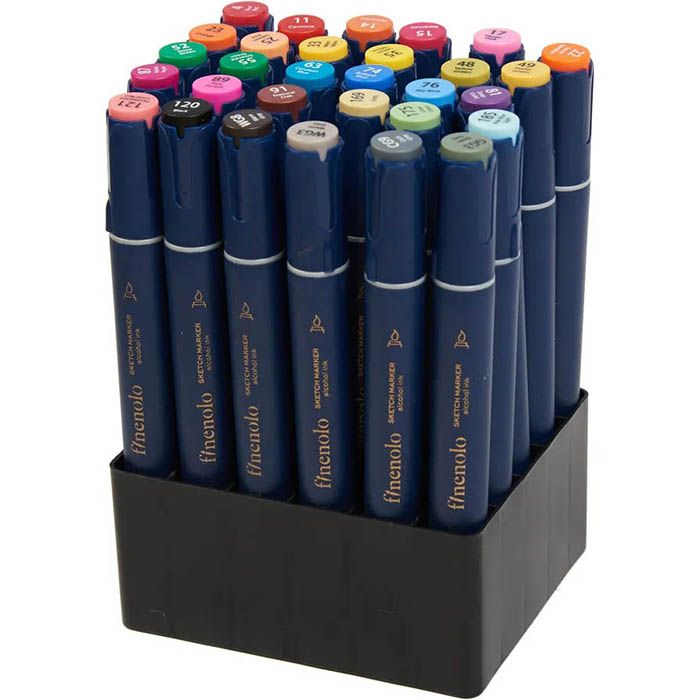 Набор маркеров Finenolo для рисования, раскрасок и скетчинга содержит 30 маркеров. Двусторонние спиртовые маркеры Finenolo поставляются в тканевых кейсах с ручкой для переноски. Внутри кейса маркеры расположены на пластиковой подставке. Торцы колпачков окрашены в цвет чернил, на них нанесены номер и название. Маркеры прекрасно подойдут для новичков в маркерном скетчинге. Рекомендуется использовать специальную бумагу для маркеров, гладкую и белую. Каждый маркер имеет два наконечника: гибкий наконечник-кисть для линий разного размера и наконечник-долото для крупных заливок и проработки деталей [ребром наконечника-долото]. В наборе есть маркер-блендер с бесцветными чернилами для смешивания цветов и изменения тональности цветов. Finenolo – художественный бренд, созданный компаниями Deli и MPM. Производитель канцелярских товаров №1 в Китае и крупный российский дистрибьютор товаров для художников объединились, чтобы разработать новую коллекцию арт-материалов. Яркие насыщенные цвета. Блендер в комплекте. Прочная удобная сумка-органайзер. Для новичков в скетчинге, раскрасок, рисования.