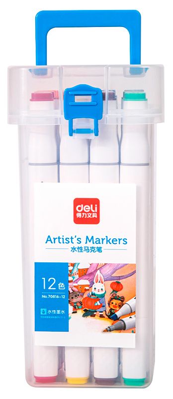 Маркеры для скетчинга Deli 70816-12, чернила на водной основе, квадратная форма, двухсторонние, 12 цв.