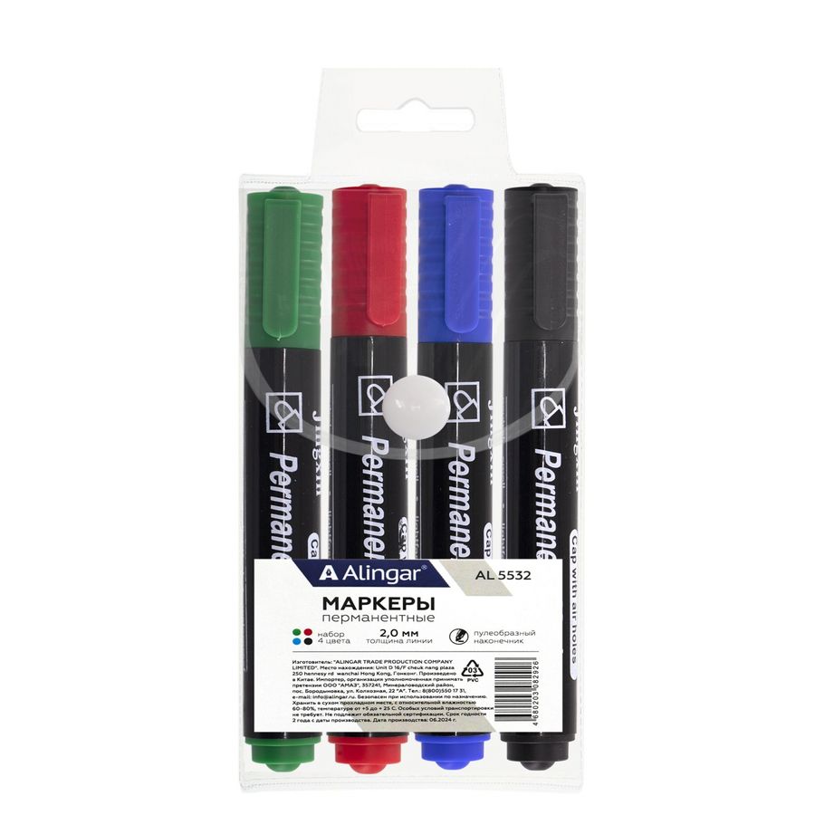 Набор маркеров 4 цвета, Alingar, перманентный, пулевидный, 2 мм