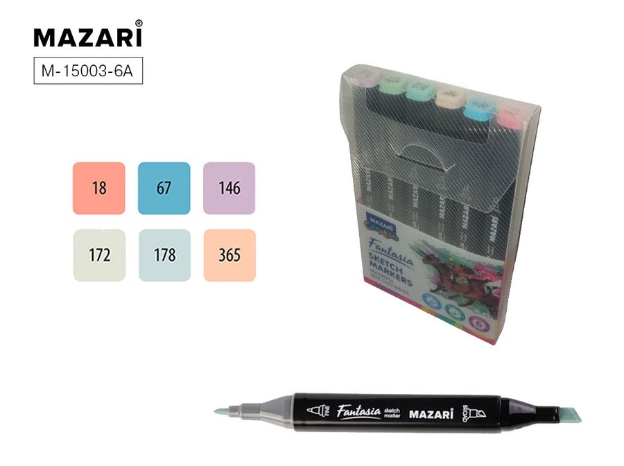 Маркеры для скетчинга двухсторонние 6цв FANTASIA Pastel colors MAZARI M-15003-6A