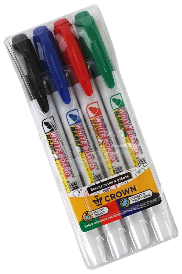 Набор маркеров д.белой доски WB-505-4(SET) 4цв. ширина линии 2мм _ CROWN