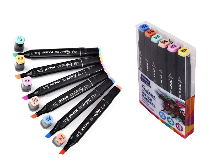 Набор двухсторонних маркеров для скетчинга Mazari FANTASIA Pastel colors 2 (пастельные цвета 2), 6 цветов