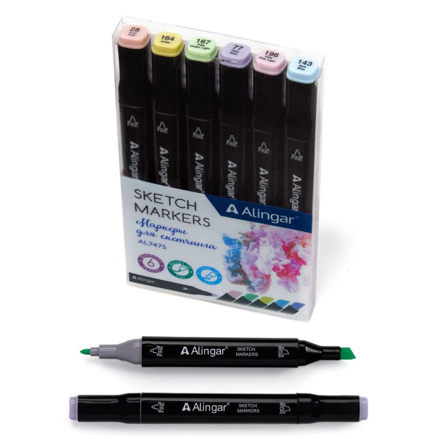 Маркеры для скетчинга 6цв. двустор. ALINGAR AL7475