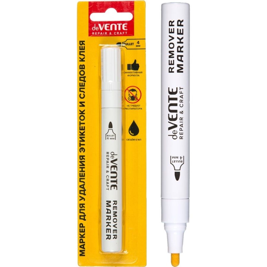 Маркер для удаления этикеток, следов скотча и клея "deVENTE. REPAIR & CRAFT. Remover" круглый корпус, пулевидный наконечник, в блистерной упаковке