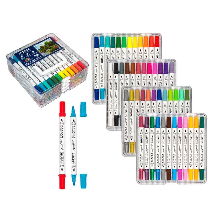Набор маркеров акриловых "deVENTE. HOBBY CREATIVE. Classic&Pastel" 48 цветов, двусторонние (кистевидный 1-5 мм/пулевидный 2-4 мм), круглый корпус, в пластиковой коробке