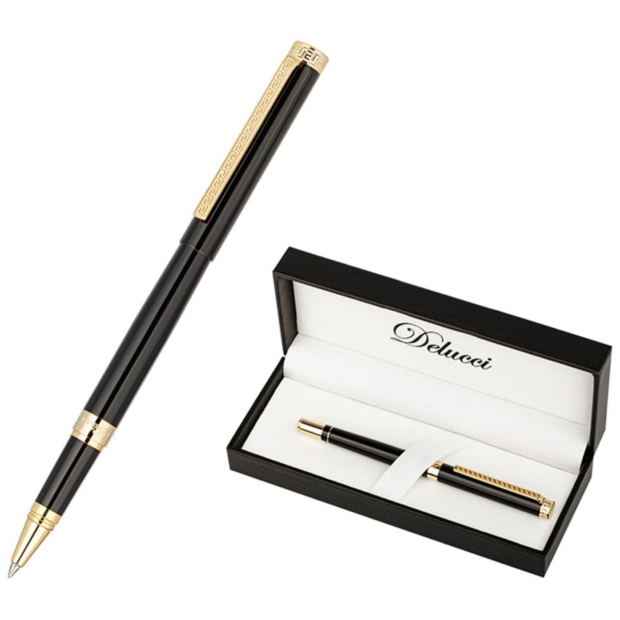 Подарочная ручка-роллер Delucci серии Classico – это элегантное сочетание чёрного корпуса с золотыми деталями. Медь и никелированное покрытие делают её качественной, а вычурности добавляет гравировка на клипе и торце, которая напоминает египетские мотивы. Поэтому ручка с чёрными чернилами отлично подойдёт ценителям оригинальных вещей. Клип также выполнен из меди. С помощью него пишущеё средство можно закрепить там, где необходимо, и оно всегда будет под рукой.Диаметр пишущего узла – 0,6 мм, а толщина линии письма – 0,4 мм. Это значит, что ручка будет оставлять аккуратный след и подойдёт для любого стиля письма.Изделие Упаковано в кожаный футляр с фирменным логотипом.• цвет чернил: чёрный;• толщина линии письма: 0,4 мм;• диаметр пишущего узла: 0,6 мм;• цвет корпуса: чёрный/золото;• тип упаковки: кожаный футляр;• комплектация: футляр, ручка.