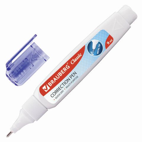 Ручка-корректор BRAUBERG предназначена для точных исправлений текста на любых типах бумаги. Быстросохнущий корректор на спиртовой основе имеет объем 9 мл и обладает устойчивостью к морозу. Надежный металлический наконечник обеспечивает экономичный расход корректирующей жидкости. Корректирующая ручка оснащена клапанным механизмом, и подача жидкости осуществляется с помощью нажатия на наконечник ручки. Перед началом использования ОБЯЗАТЕЛЬНО встряхните ручку. На корпус ручки не следует оказывать повышенное физическое давление, за исключением случаев, когда ручкой давно не пользовались.