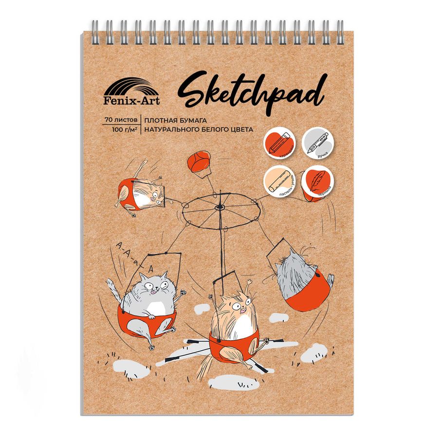 Скетчпад А5 148х195 мм, 70 л, блок - белый офсет 100 г/м², арт. 60670 КОТО-КАРУСЕЛЬ /обложка полноцветная печать, УФ-лак сплошной/