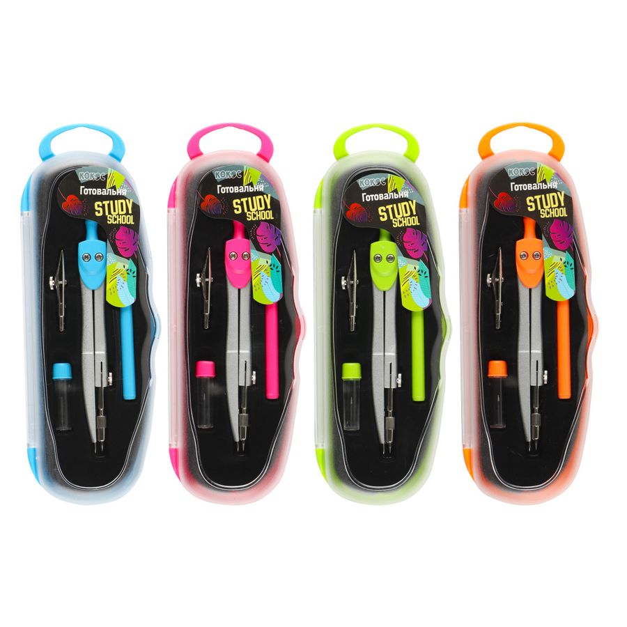 Набор чертежный 4пр. StudySchool пласт.футляр ассорти Кокос 214822