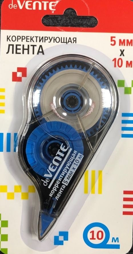 Корректирующая лента "deVENTE" 5 ммx10 м, черно-синий полупрозрачный корпус, фронтальный аппликатор, в картонном блистере