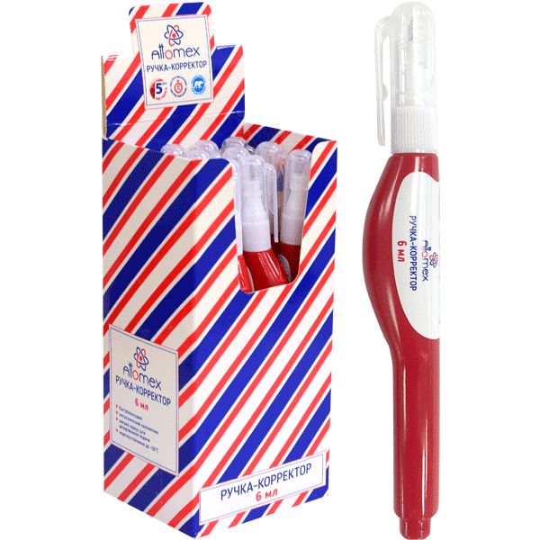 Ручка-корректор "Attomex" 06 мл, быстросохнущая, трубчатая система подачи, в картонном дисплее