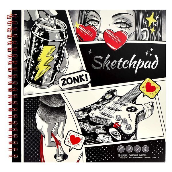 Альбом для рисования (Скетчпад) 195х195 мм, 40 л, блок - белый офсет 100 г/м², арт. 64864 ГЕРОИ АНИМЕ КОМИКС /обложка полноцветная печать, гребень по короткой стороне, жёсткая подложка, тиснение фольгой.
