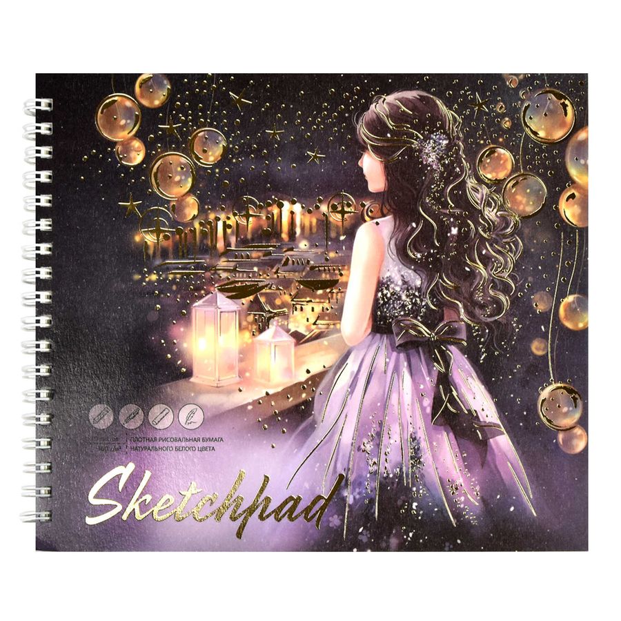 Альбом для рисования (Скетчпад) 168х195 мм, 30 л, блок - рисовальная бумага 160 г/м², арт. 67713 МЕЧТАТЕЛЬНИЦА /обложка полноцветная печать, тиснение фольгой/ 67713