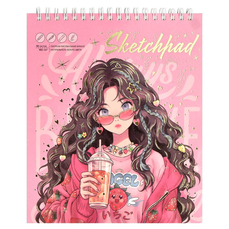 Альбом для рисования (Скетчпад) 168х195 мм, 30 л, блок - рисовальная бумага 160 г/м², арт. 67723 КЛУБНИЧНОЕ НАСТРОЕНИЕ /обложка полноцветная печать, тиснение фольгой/