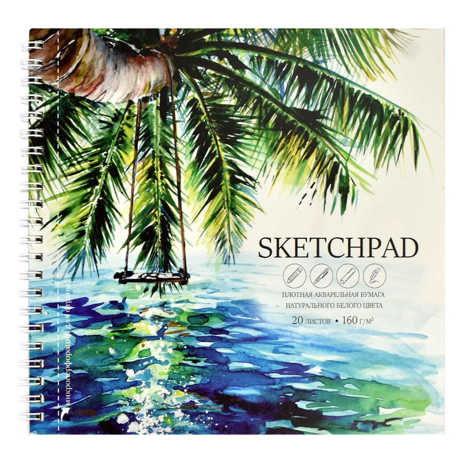 Альбом для рисования (Скетчпад), размер 195х195 мм, количество листов 20, гребень по короткой стороне, рисовальная бумага, 160 г/м²,
