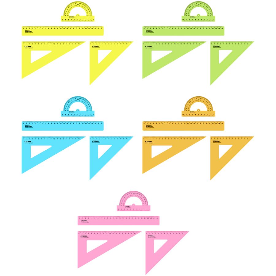 Набор чертёжный СТАММ L – отличный вариант для выполнения чертёжных и измерительных работ. Он включает в себя: линейку длиной 25 см, два треугольника 12/45°, 18/30° и транспортир 180°/10. Набор представлен в ярких неоновых цветах, цвет шкалы – чёрный. Все изделия в наборе имеют безопасные закруглённые углы и чёткую миллиметровую шкалу. Чертёжные принадлежности изготовлены из качественного полистирола. Чернила, используемые для нанесения шкалы на изделия, устойчивы к истиранию в процессе использования. Индивидуальная упаковка − пакет с европодвесом.• Количество предметов: 4;• Вид: L;• Материал: полистирол;• Цвет: неоновое ассорти.
