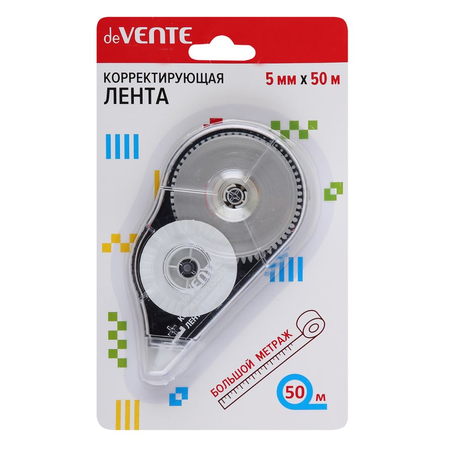Корректирующая лента, 5 мм, 50 м, съемный колпачок, блистер, европодвес, deVENTE, 4062400