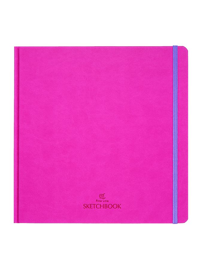 Блокнот для зарисовок - скетчбук Премиум для акварели, формат 230х230, 32 листа, твердая обложка - книжный переплет, экокожа Latte цвет розовый c тиснением лого, блок – акварельная бумага 200 г/м² Гознак СПб, кругленые углы, закрывающая резинка, каптал, индивидуальная упаковка.