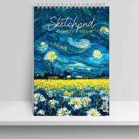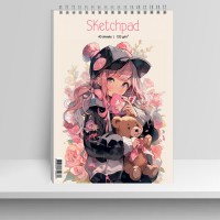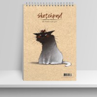 Блокнот для зарисовок, формат А5, 60 листов, офсет 100 г/ м² , нелинованный, жесткая обложка с двух сторон, цветная печать, матовая ламинация, крупный металлический гребень.
